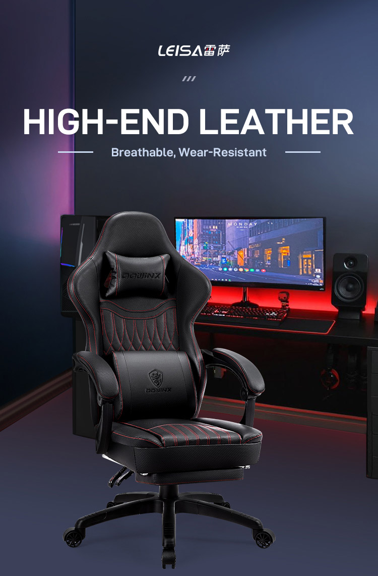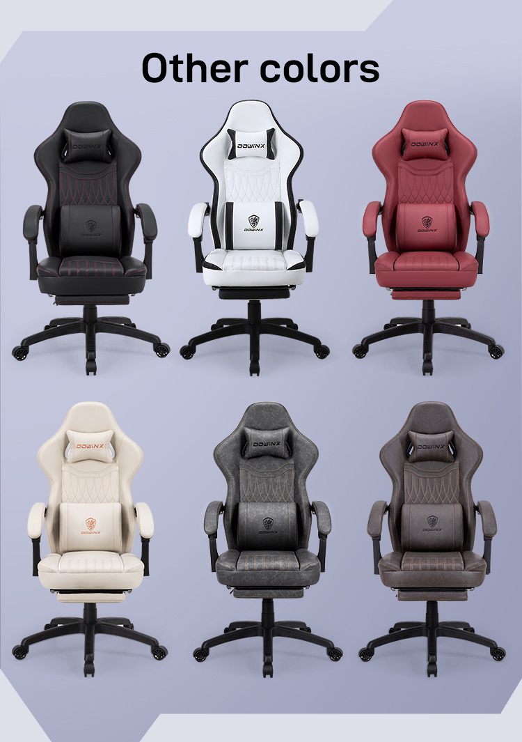 Dowinx Gaming Chair with Footrest Headrest & Lumbar Support High Back Ergonomic Game Chair Swivel Leather Computer Chair