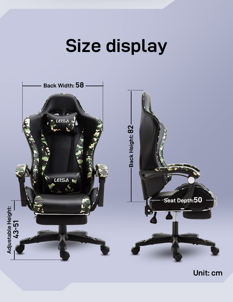 Game Chair Camouflage Green And Black High Back Sillas Gamer Comfortable Leather Swivel Camouflage Gaming Chair