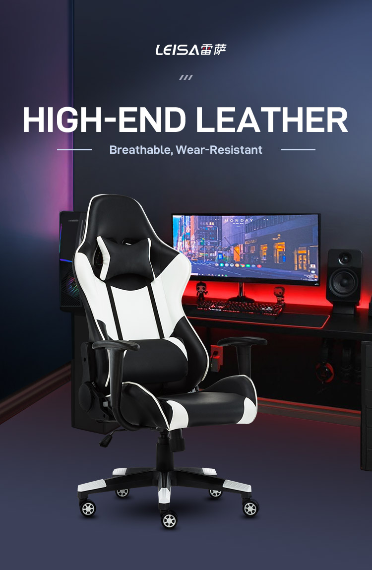 Gaming Chair PU Leather Massage Gamer Ergonomic Computer Chair Adjustable Swivel Task Chair with Footrest