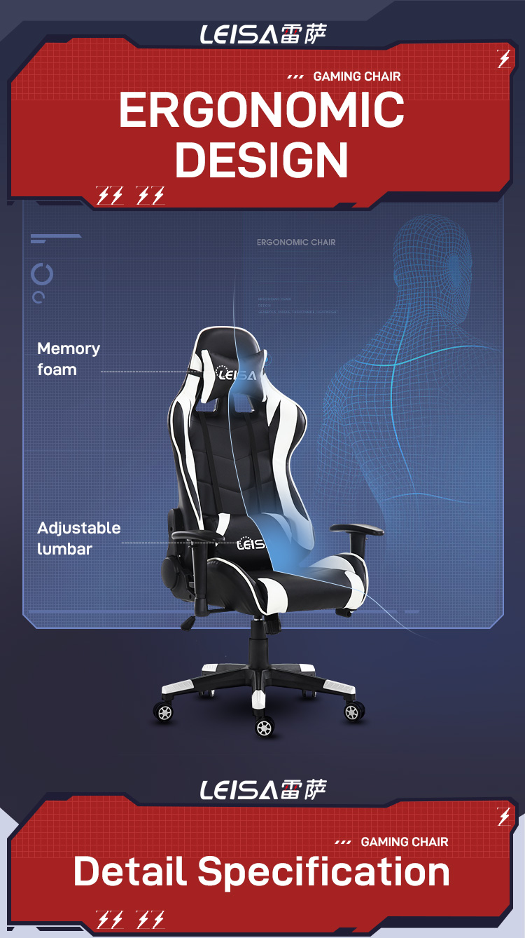 High Back Computer Chair Leather Racing Executive Ergonomic Office Chair Adjustable Swivel Gaming Chair
