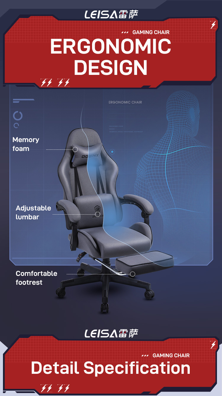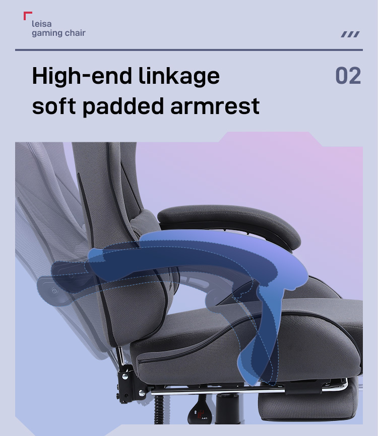 High Quality Customizable Modern PU Leather Ergonomic Grey Gamer Pc Gaming Chair Linkage Armrests Office Chairs