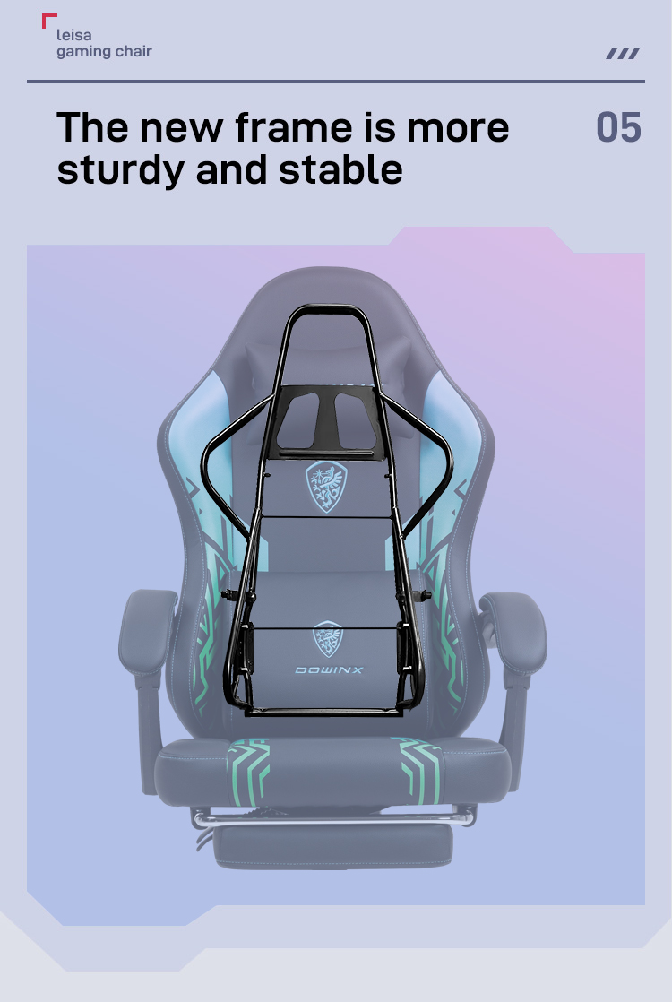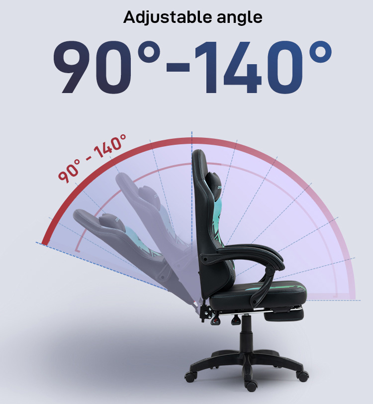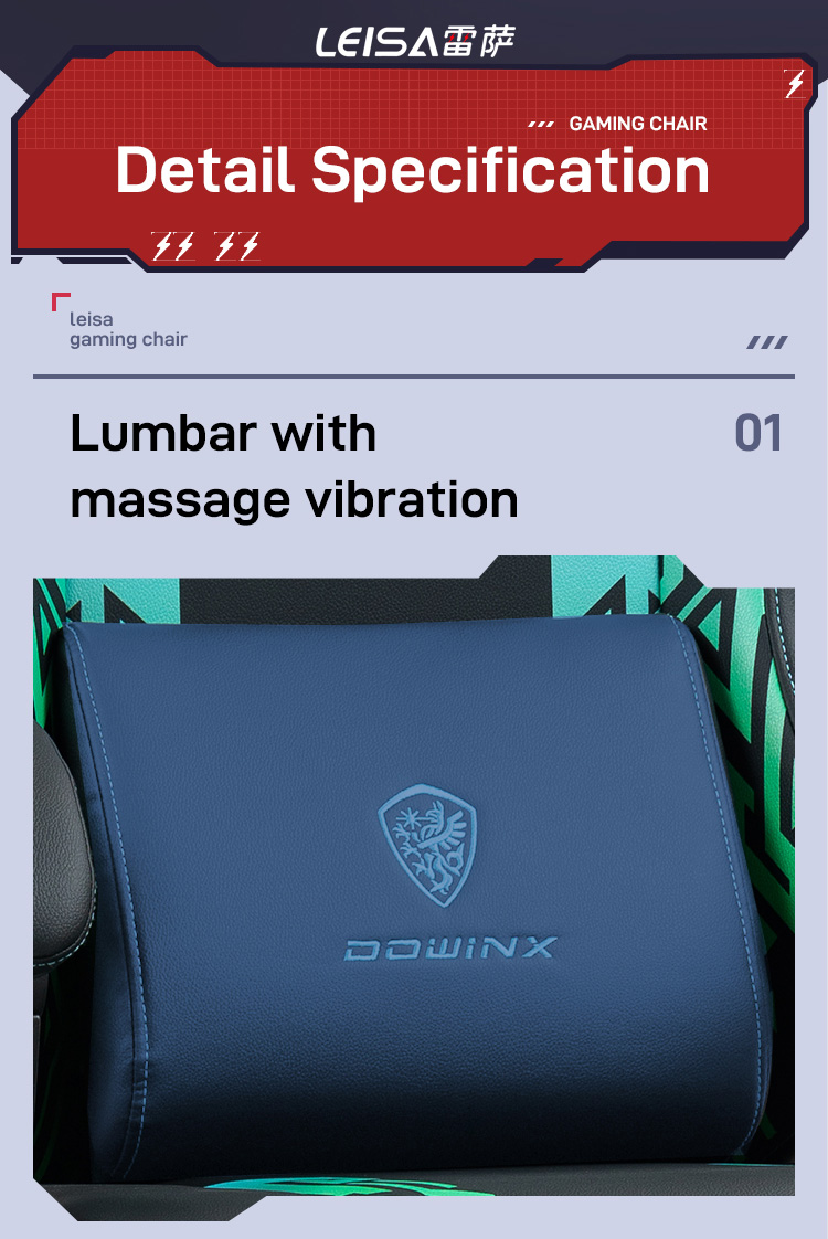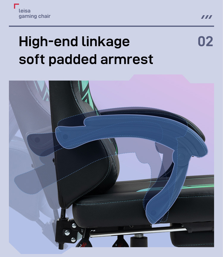 Navy Blue Gaming Chair Linkage Armrests with Massage Lumbar Support and Retractable Footrest