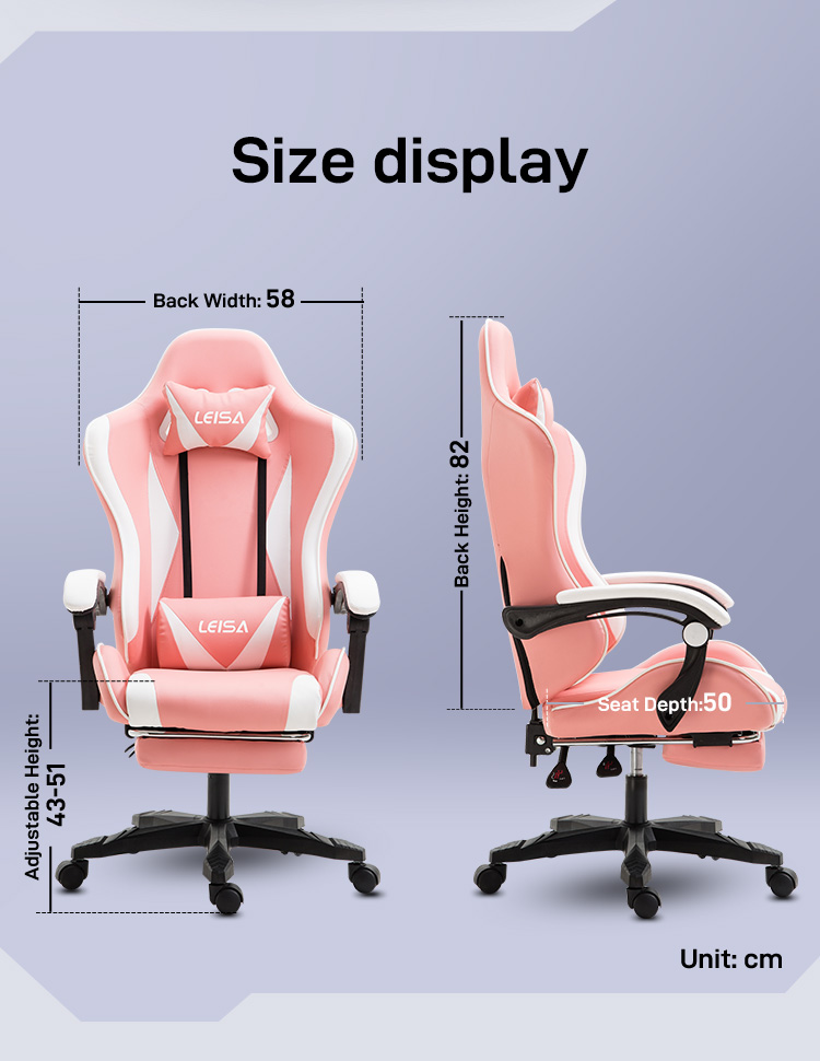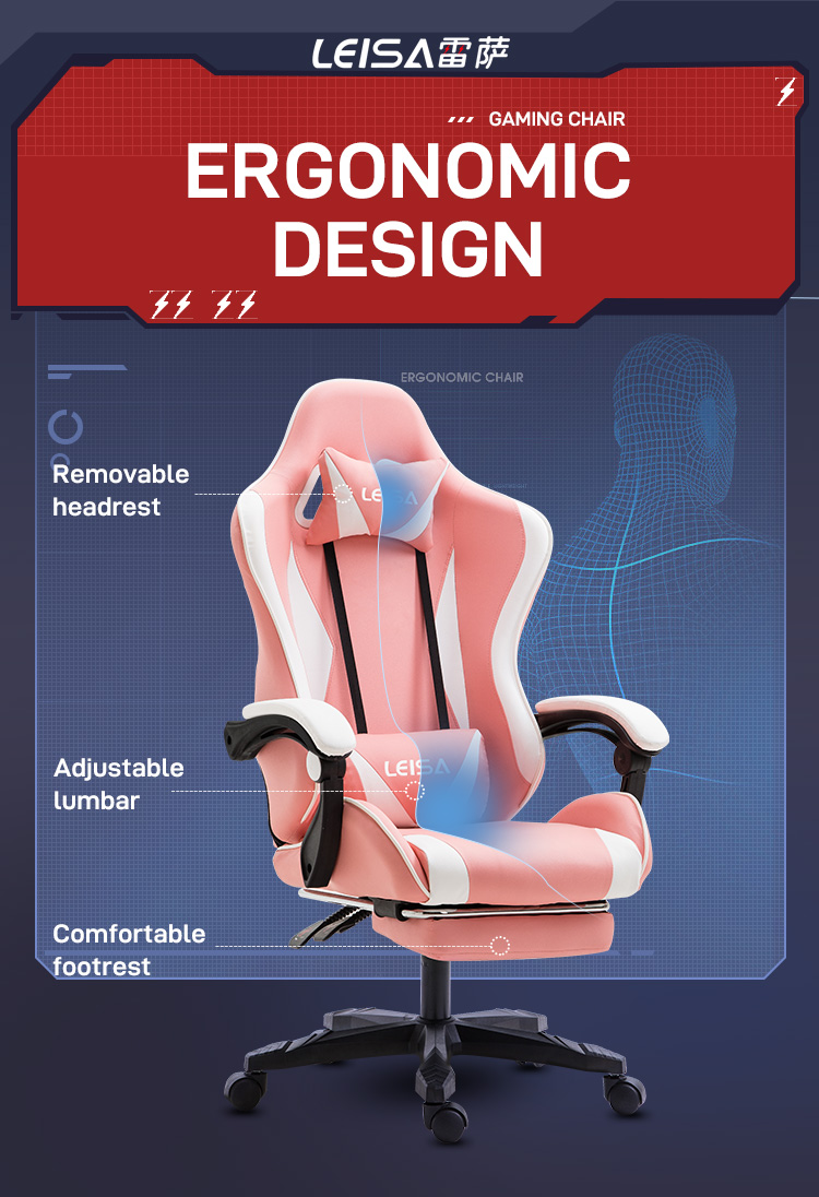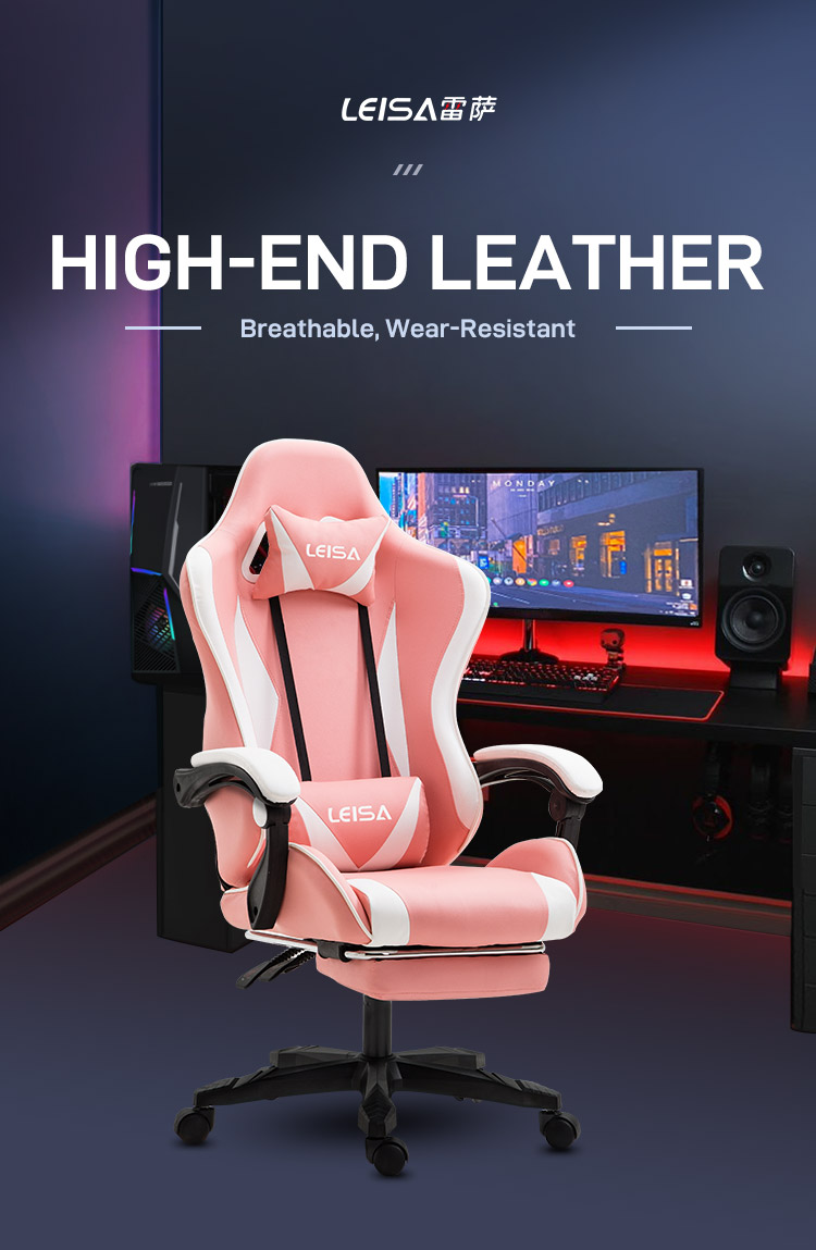Pink Gaming Chair With Footrest Massage Racing Office Computer Ergonomic Chair Leather Reclining Gamer Chair