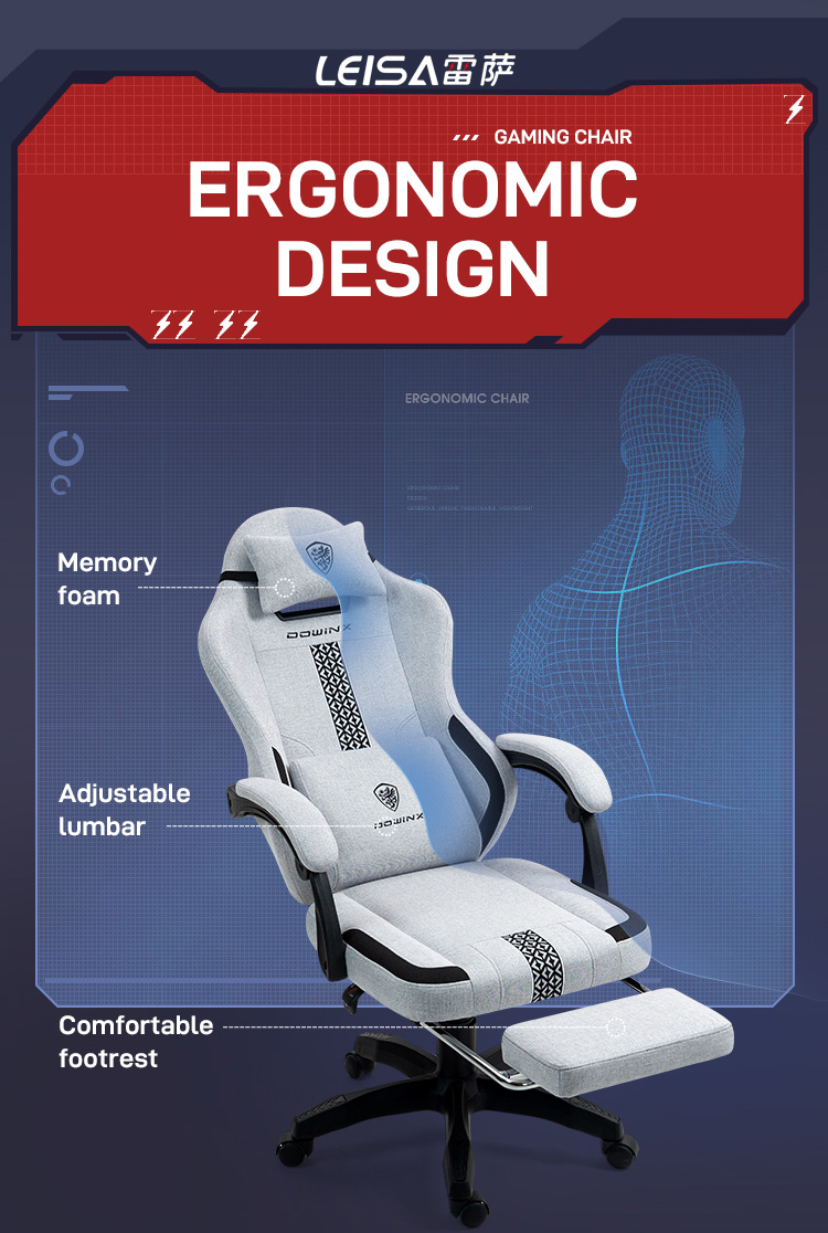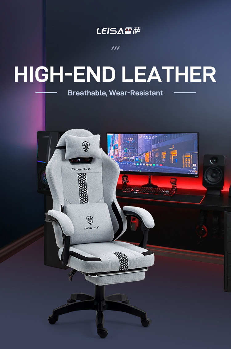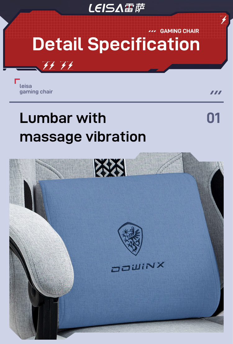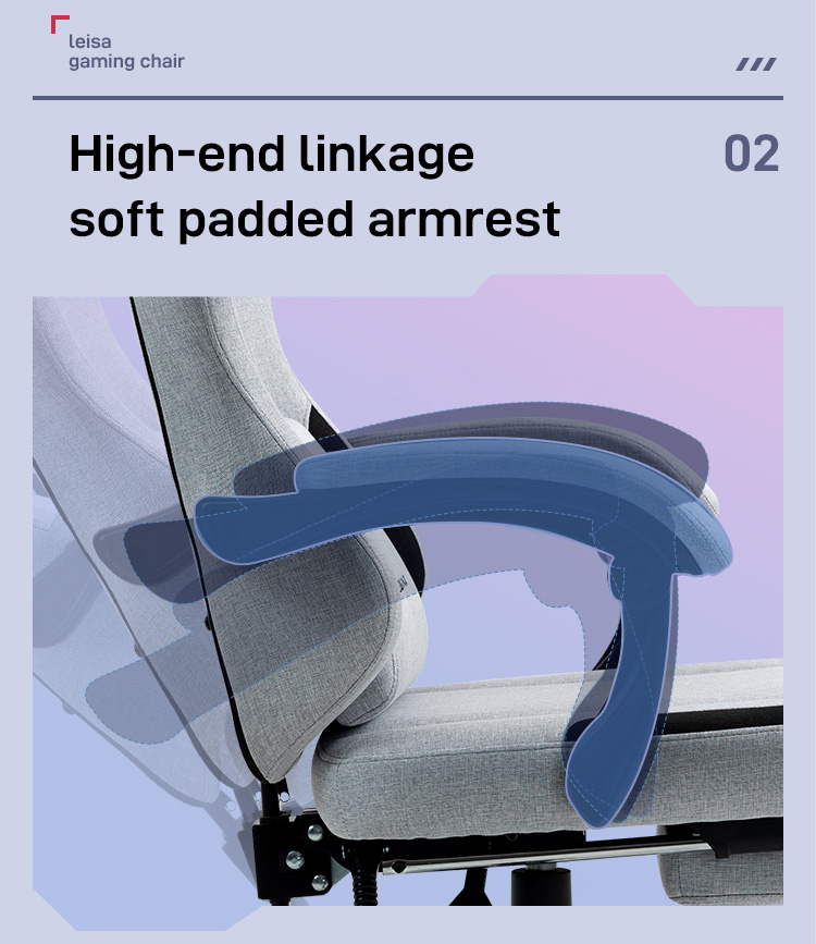 Velvet Gaming Chair in Gray with Linked Armrests Massage Lumbar Pillow and Headrest
