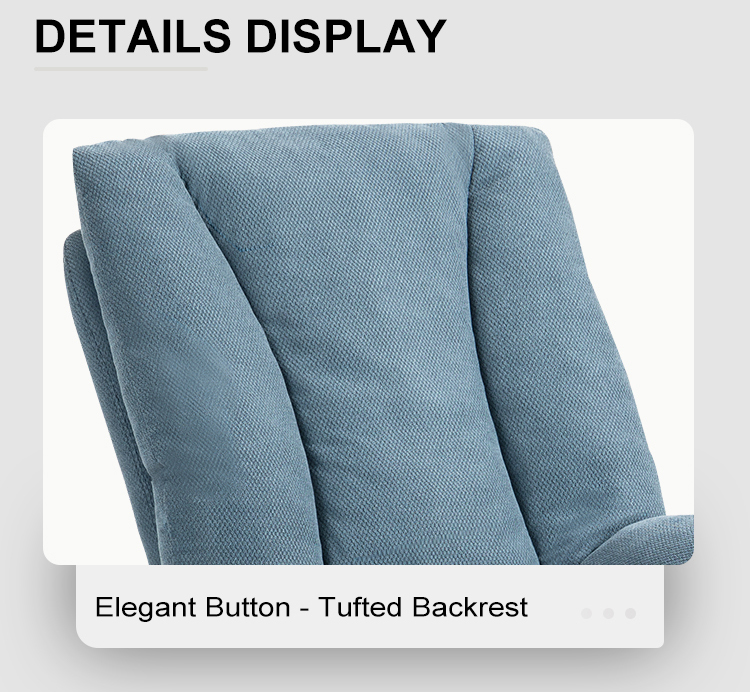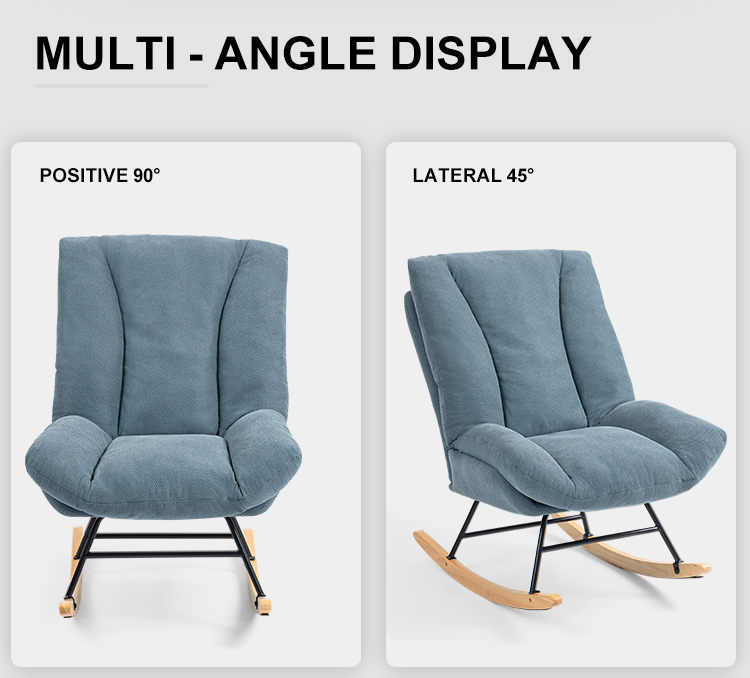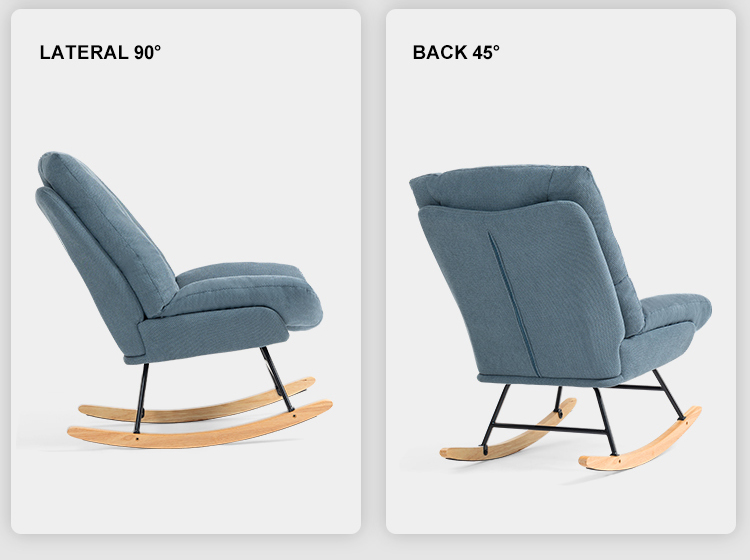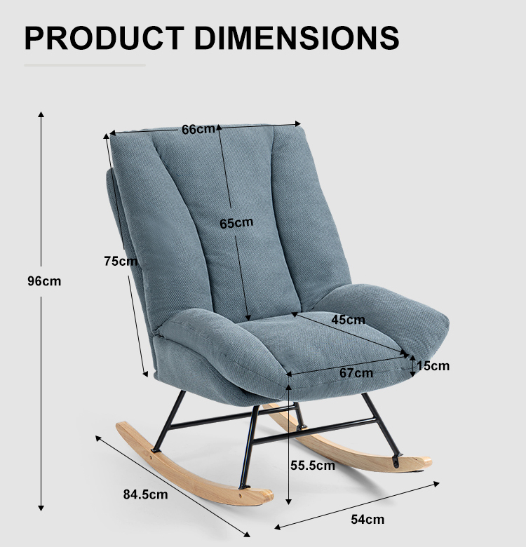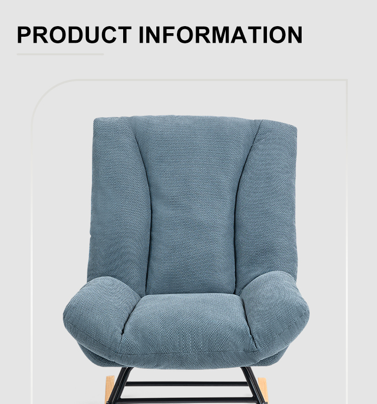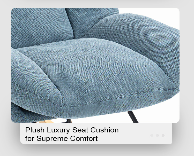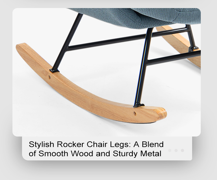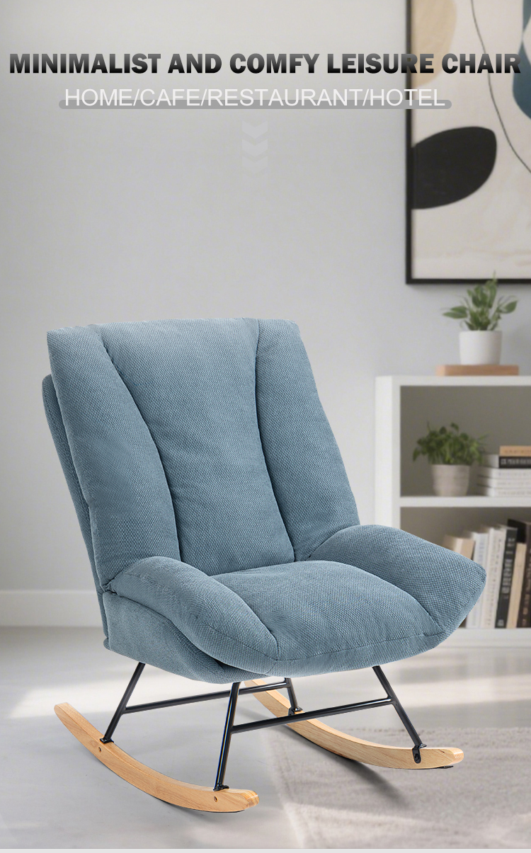 Comfy Light Blue Rocking Chair with Black Metal Frame and Wooden Rockers Living Room Lounge Chair Furniture for Bedroom