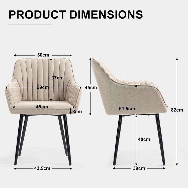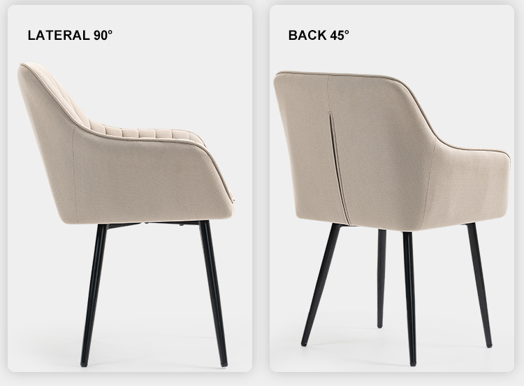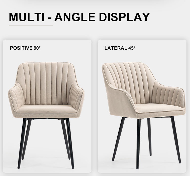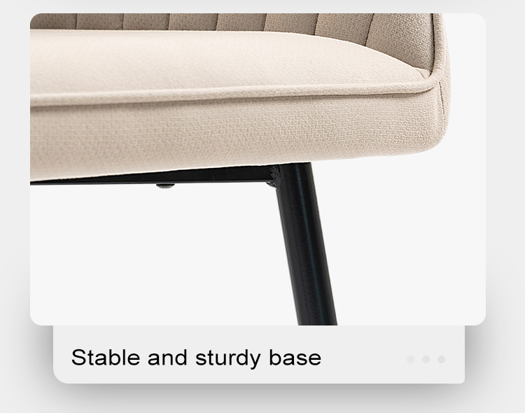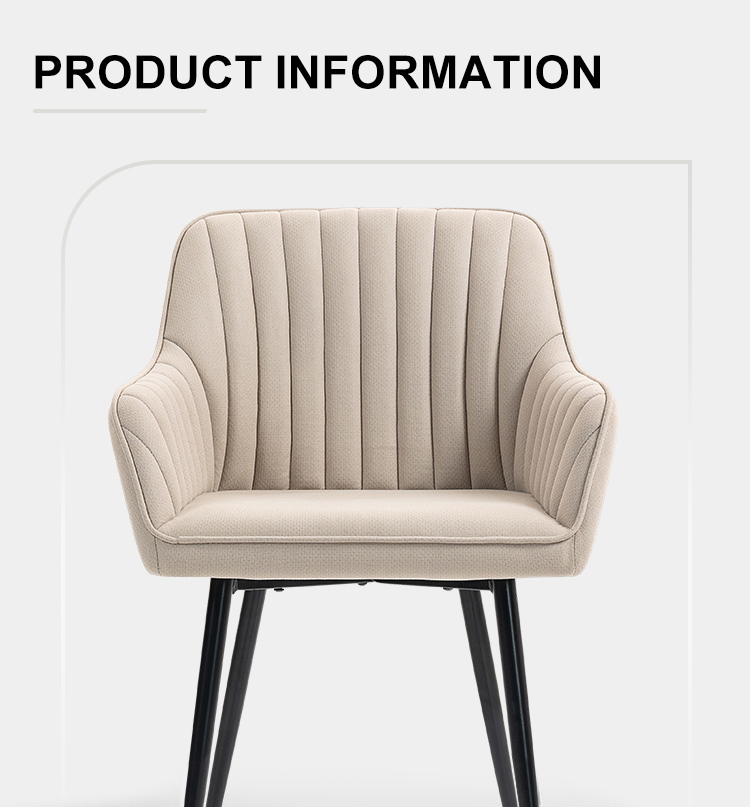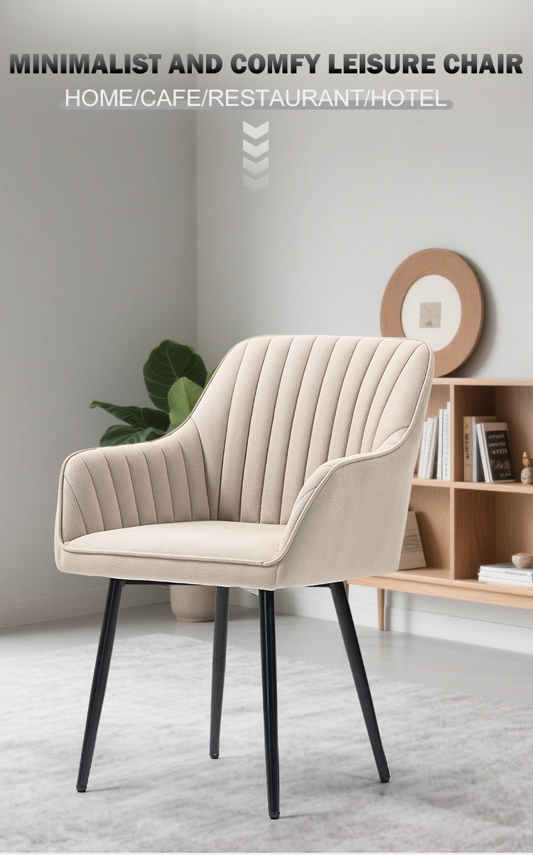 Modern Light Beige Leisure Chair with Vertical Stripe Sewing and Black Thin Legs Modern Dining Chairs for Dining Room Kitchen