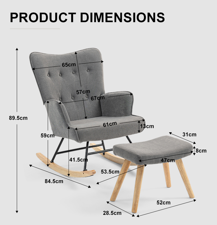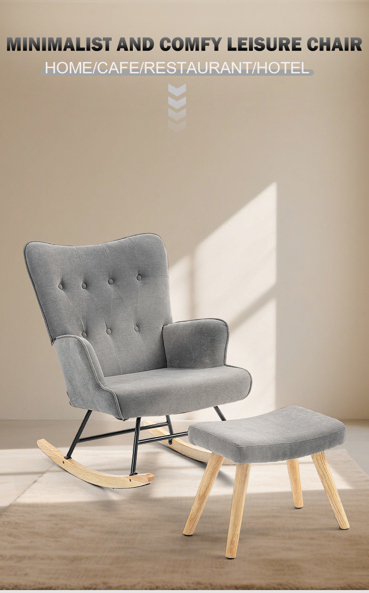Modern Upholstered Rocking Chair with Ottoman Set – Cozy Premium Fabric Living Room Lounge Chair Furniture for Bedroom