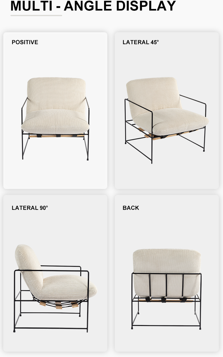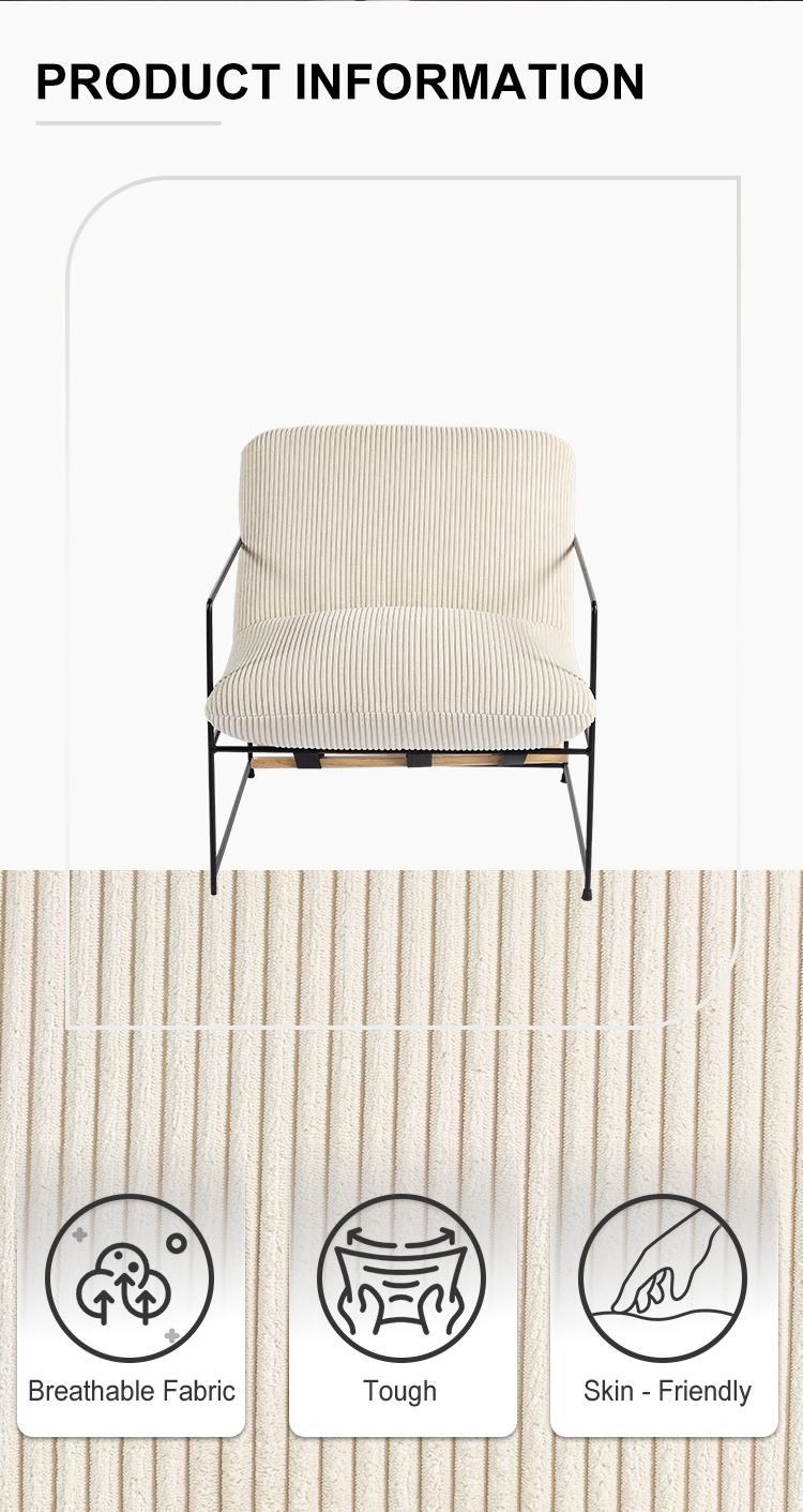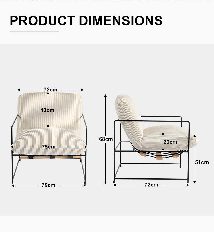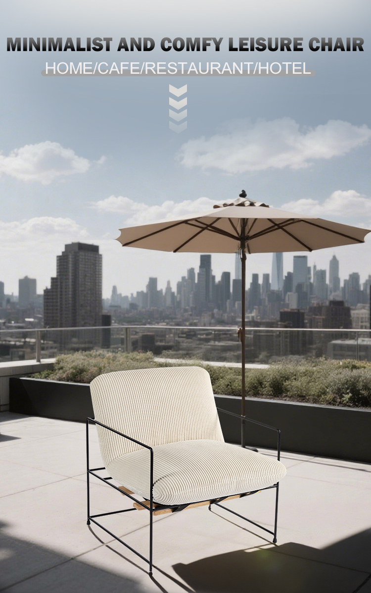 Outdoor Leisure Chair Sofa for Rooftop & Balcony Modern Metal Frame & Comfortable Cushion Living Room Chair Home Furniture